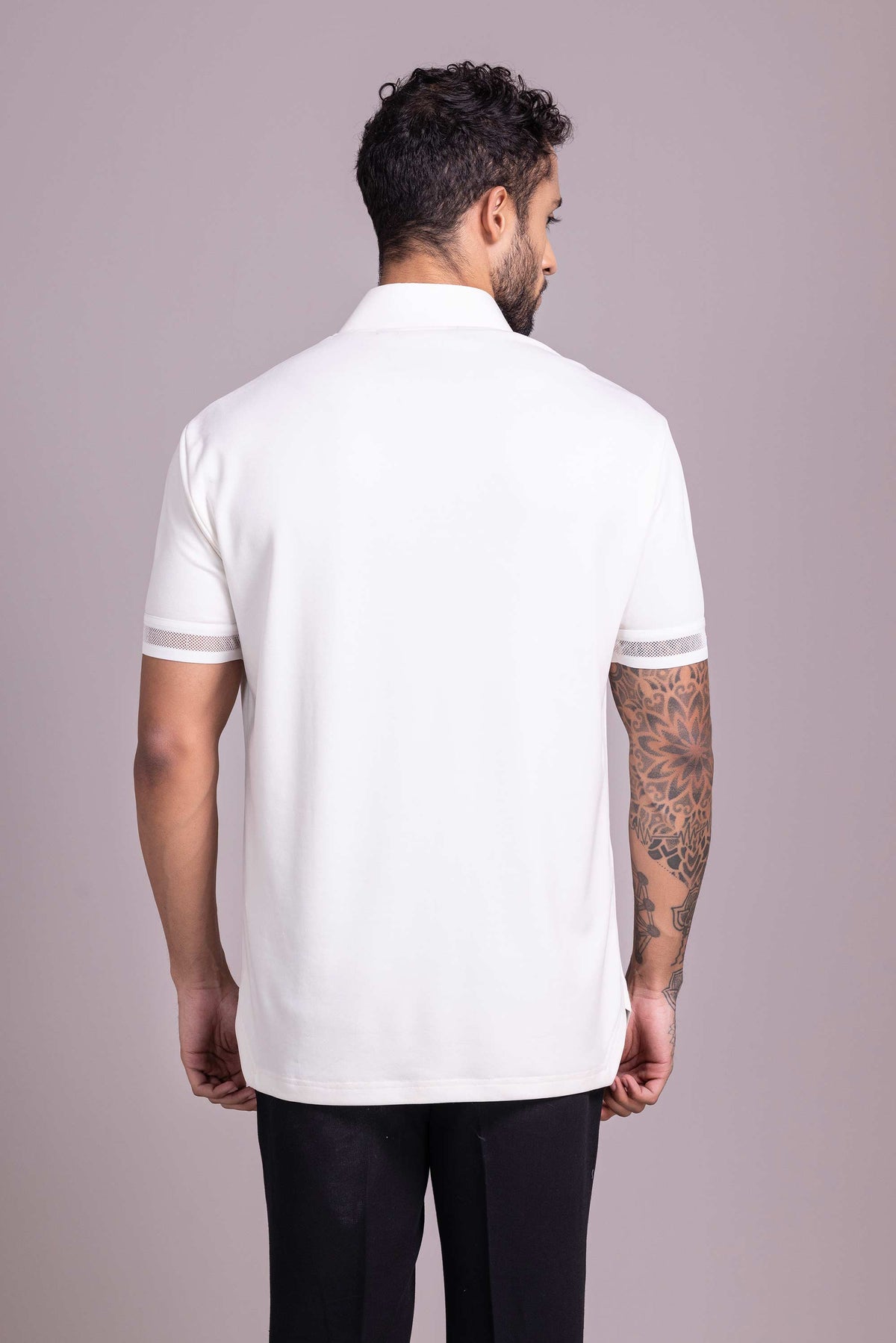 White V-neck T-shirt with collar